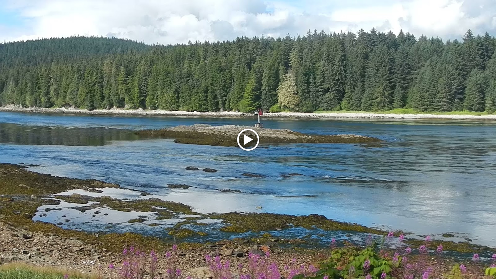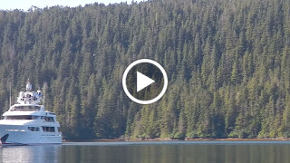 du côté ouest de ce village donc pas besoin de faire le tour de la pointe mais le quai est en fait à l’intérieur de la baie. Vous allez penser que c’est pas si grave ; il n’y a qu’à faire le tour. Pas tout à fait car il y a un rapide avec du courant pouvant atteindre jusqu’à 7,5 noeuds dans un passage truffé de récifs. Bien sûr, nous sommes arrivés presque qu’au plus fort du courant car nous n’avions pas planifié entrer. Et bien, nous avons fait des zigzags devant l’entrée en singeant les pêcheurs à la traine. Les gens d’ici, de la tribut des Tlingits, ne laissent personne marcher. Quand nous sommes partis pour aller visiter le village, à peine avions nous mis le pied sur la route que la première voiture s’arrêtait pour nous offrir de nous embarquer. Au retour, la même chose mais cette fois-ci la voiture roulait dans le sens inverse. Nous leur avons dit : «Mais, vous n’allez pas vers le village?» Ils ont répondu: «C’est pas grave, nous irons après.» La dame nous a demandé pourquoi venir de si loin pour visiter Angoon. Bonne question ! Pourquoi pas ? L’île au complet est un monument national alors nous sommes venus voir pourquoi. La dame a fait parti de ceux qui ont rédigé la demande. Elle me dit qu’ils voulaient protéger les arbres. En effet, de grosses compagnies de coupe de bois menaçaient de s'installer sur l’île et faire une coupe à blanc. C’est la seule démarche qu’ils ont trouvé pour les arrêter. Ils sacrifient la possibilité d’un développement économique pour protéger leur environnement car aucune autre compagnie ne pourra s’installer sur l’île. Impressionnant ! Un couple en vacance avec leurs filles nous ont fourni des renseignements utiles et donné du crabe Dungeness frais. Avec un peu de beurre, ce crabe donne envie de s’installer en Alaska !