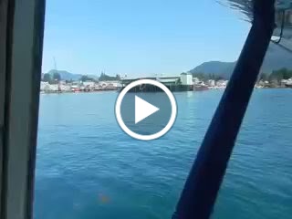 guide disait qu’il était possible de s’amarrer au quai public en face du village ou à la marina 2 miles plus loin. Nous avons d’abord été voir le quai public mais celui-ci était occupé par des petites chaloupes. Pensant que l’épicerie et le liquor store seraient en ville, nous nous sommes ancrés près du quai publique et avons utilisé l’annexe pour aller au bord afin d’éviter le transport de sacs lourds à pied. Finalement, le liquor store est à côté du quai publique et l’épicerie à 1,5 miles en direction de la marina. On a marché. Tout près de la route principale, il y a une pisciculture de saumon que les ours noirs aiment bien car ils peuvent se nourrir facilement. Nous les avons donc vu de très près. Il y en a un qui a traversé la rue à une trentaine de pieds de nous. Pendant que nous conversions avec un local sur le côté de sa maison, nous avons réalisé qu’un ours était assis à quelques pas de nous occupé à se lécher les pattes. Il semblait attendre que nous terminions notre conversation pour passer. La baie en face du village est remplie de baleines à bosse. Nous avons vu jusqu’à 5-6 qui se promenaient ensemble. Le village est surmonté du plus haut totem au monde... pas tout à fait le plus beau par contre et il est placé de sorte qu’il fait concurrence avec l’antenne satellite. Deux kayakistes sont venus nous rendre visite attiré par notre pavillon québécois. Ils étaient originaires du Vermont et