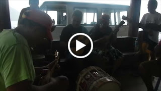 comme au Brésil où le carnaval est célébré dans toutes les villes, ici c'est dans toutes les îles. Plus amateur que ce que Gaston avait vu à Tahiti l'année dernière mais quand même beau à voir. Nous avons donc assisté à des concours de femmes fortes et de vidage de noix de cocos. Les voir lever des pierres ou ouvrir des cocos à la hâche sans porter de soulier est un peu inquiétant. Et aussi, un spectacle de chants et de danses avec des costumes colorés fabriqués maison par les participants.